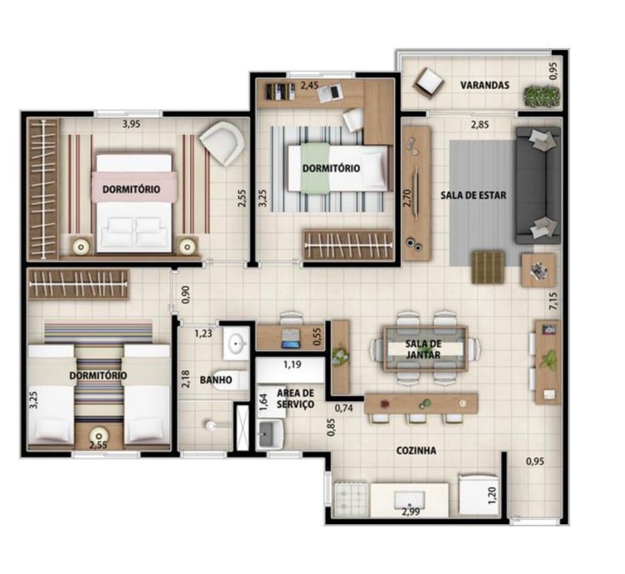 Apartamento de 71,5 m² - 3 dormitórios
