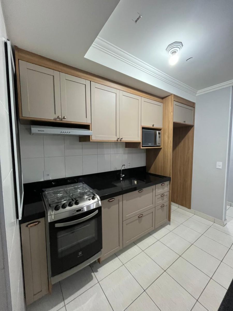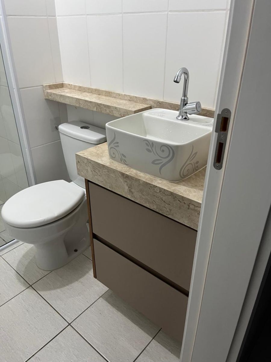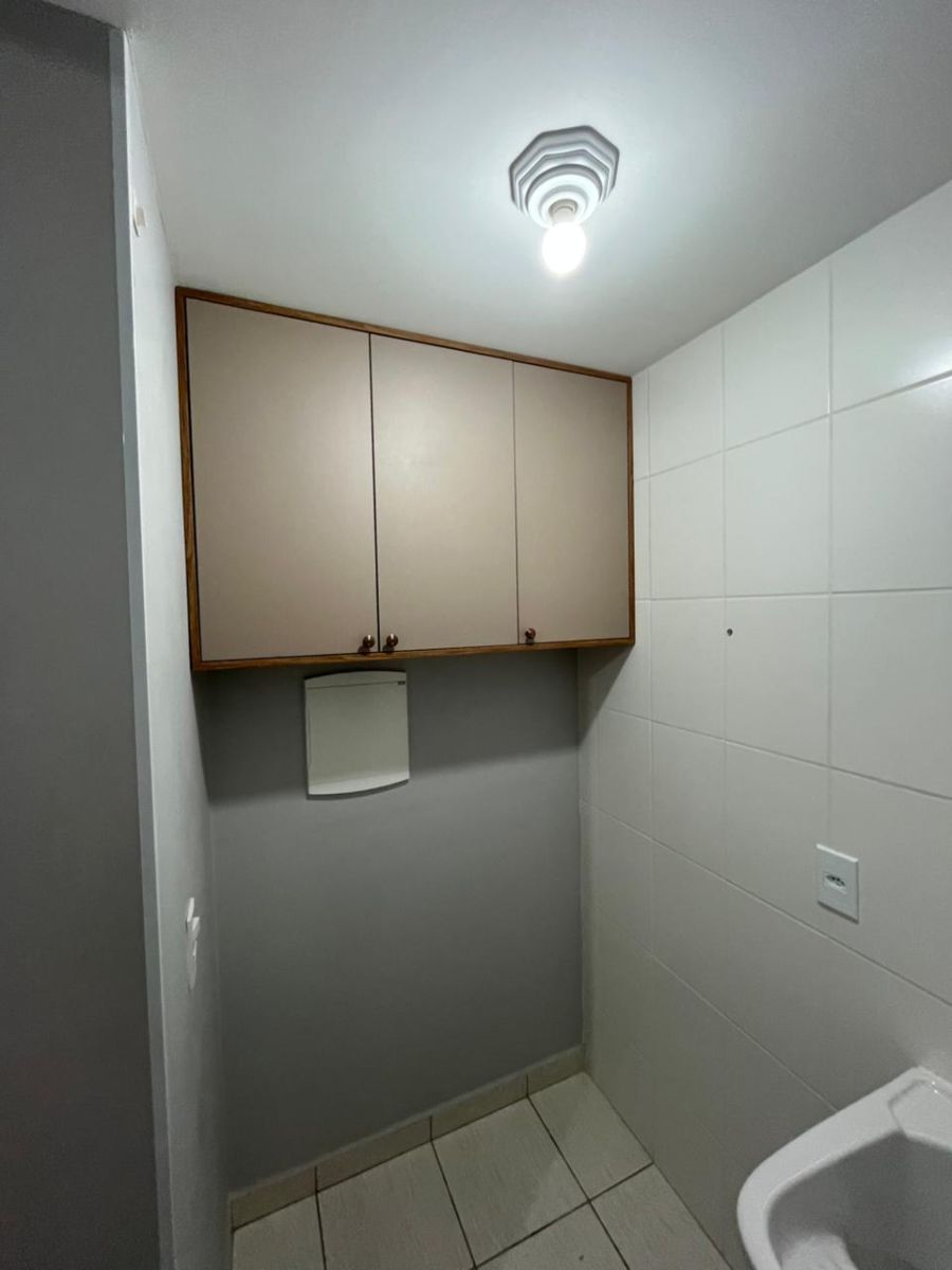 Cozinha, lavanderia e banheiro com armários planejados